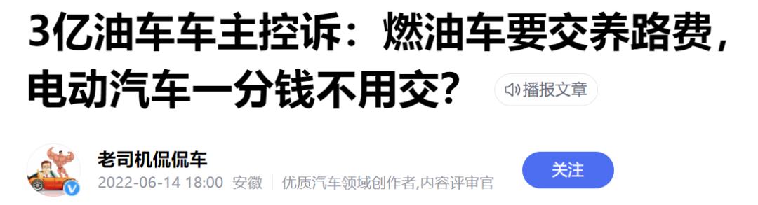 而因为电车不用加油,这些税电车车主就都不用交了,这么看还真有点油车加油养电车的意思,油车车主自然是不乐意。