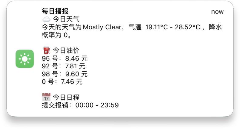 在创建快捷指令前,我们需要先明确自己的需求。也就是我们想在每日播报看到什么。以我个人为例,每日播报对于我的意义在于帮我快速了解一些今天需要知道的事情,比如天气情况、今日油价、日程安排等信息。