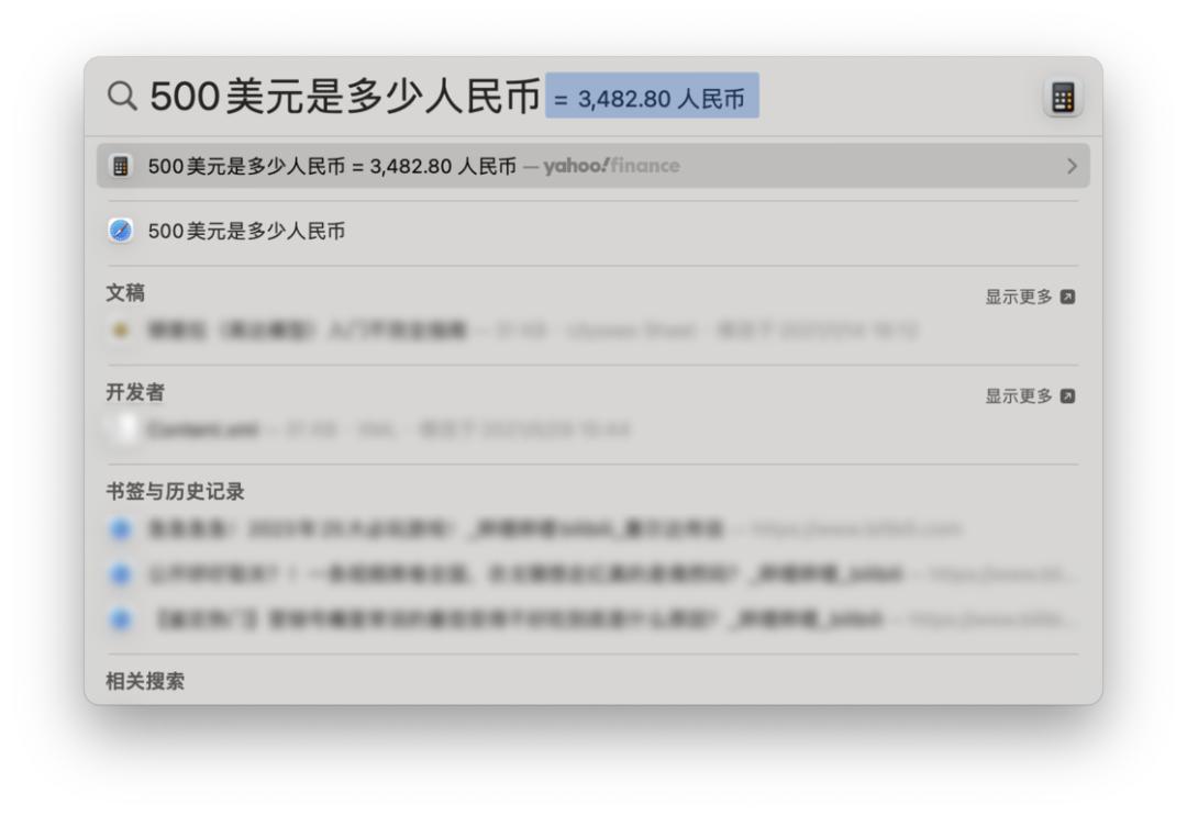 打个比方,当你想要查询人民币与美元的汇率时,快捷指令同样可以借助 API 来实现查询,但它的效率远不如直接用系统自带的「聚焦」搜索方便。