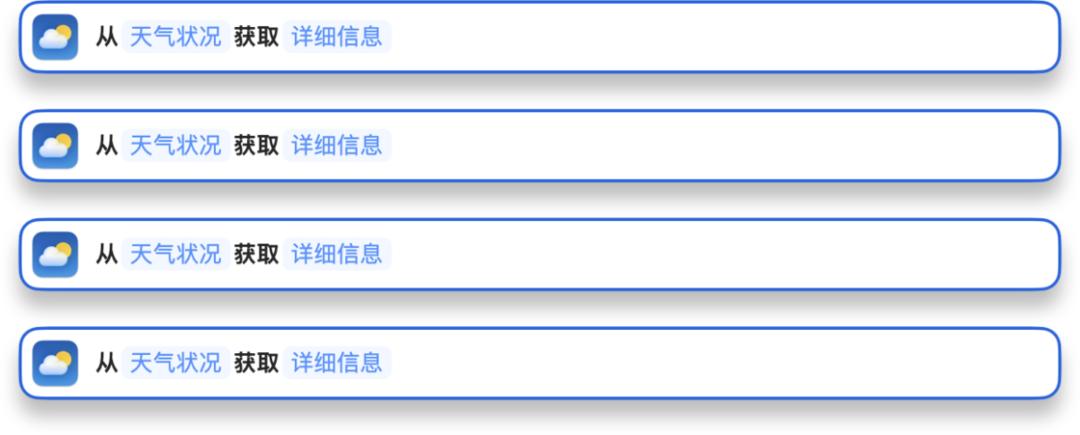此时,你会看到下图这样的动作。其中蓝色的部分是动作的参数。你可以通过修改参数来调整这个动作所获取 / 输出的内容。