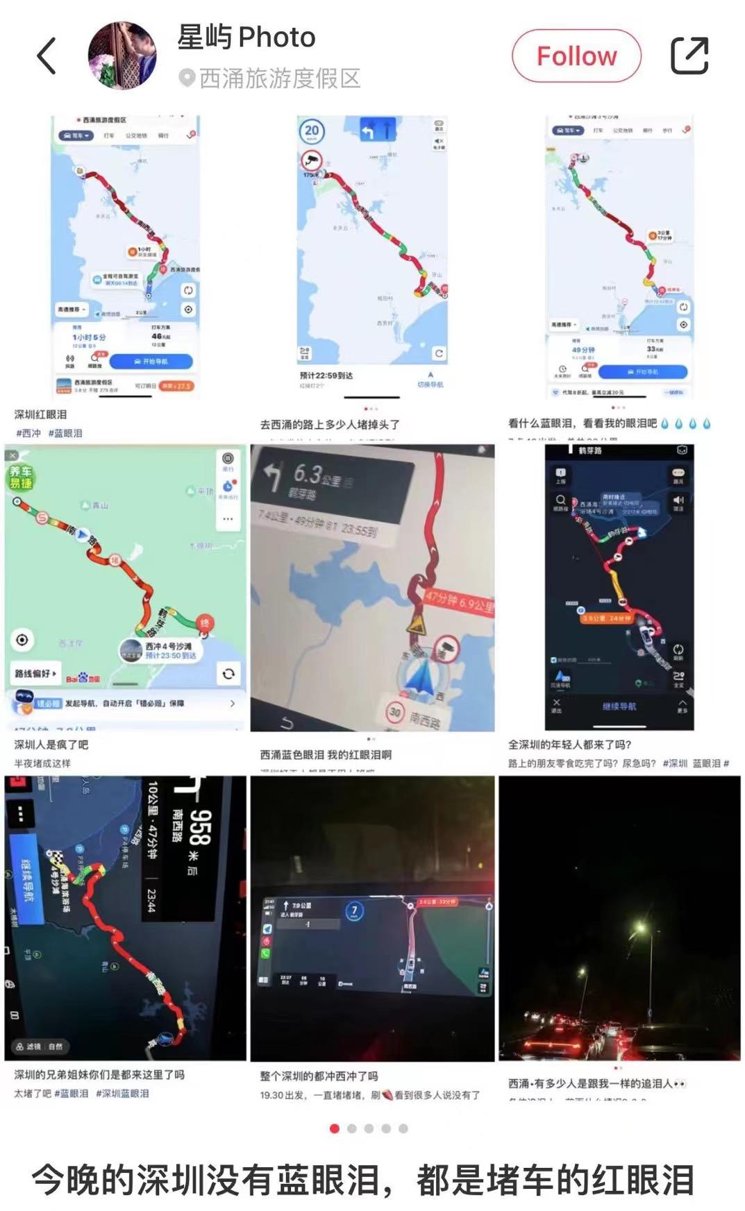 3月22日,深圳天文台一场西涌蓝眼泪直播,把深圳人的魂儿都吸走了。心向往之的打工人立刻行动,导致周四晚上通往东部以及出入大鹏的道路堵车长达七公里。