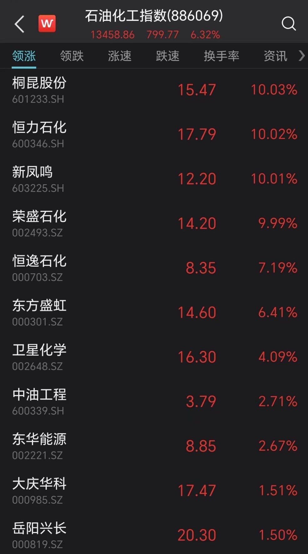 受荣盛石化刺激和国际油价大涨影响,油气产业链早盘全线爆发,恒泰艾普大涨超12%,先前荣盛石化、桐昆股份、华锦股份涨停,恒力石化涨超6%。消息面上,国际油价大涨5.13%,刷新近两周高位。