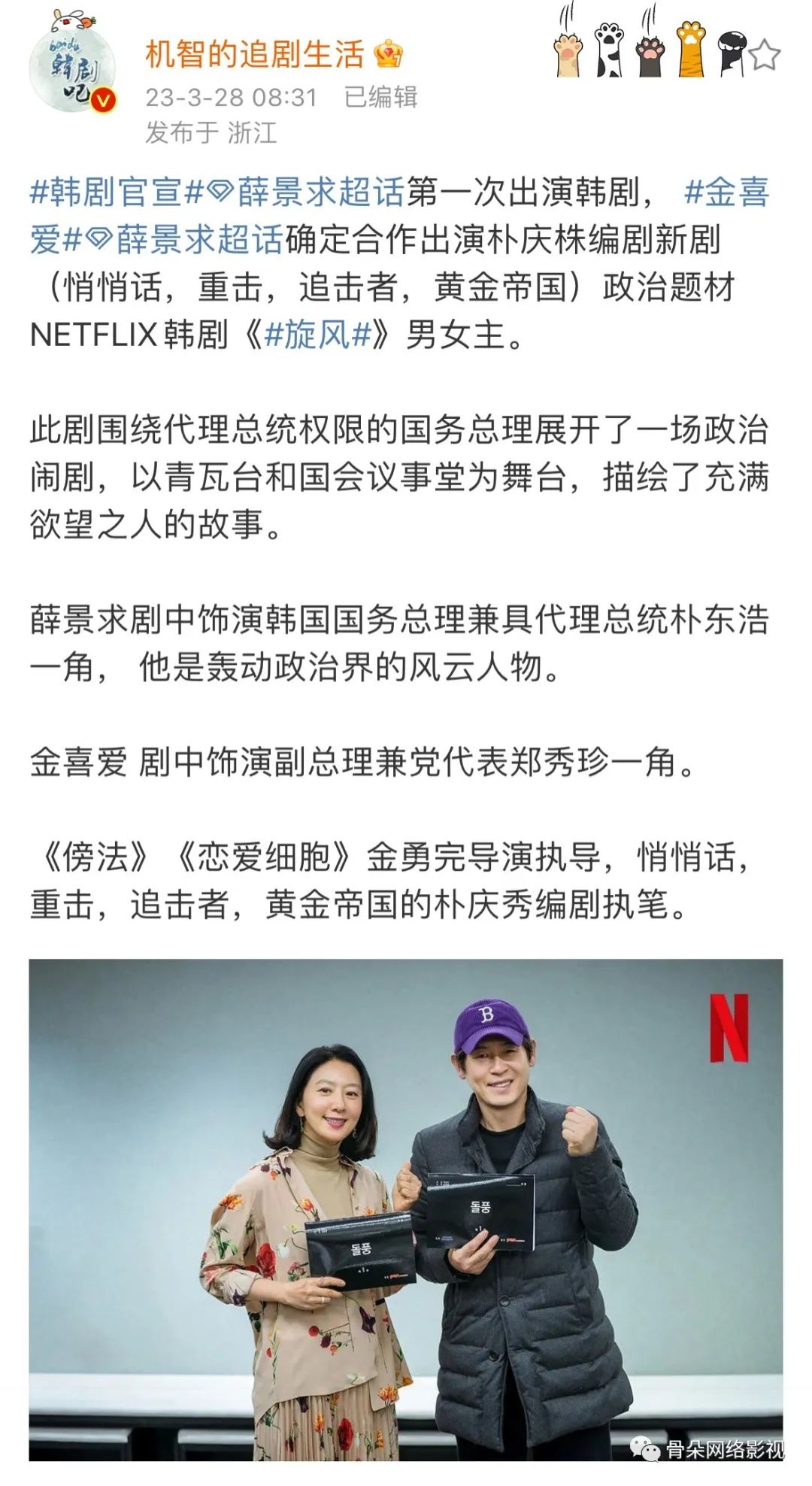 不过毕竟还未正式上线,所以可以暂时抛开剧透,来为演员阵容买单。毕竟《Kill福顺》可是由韩国大满贯影后全度妍和忠武路三驾马车之一的影帝薛景求联袂出演,而且还有去年凭借Netflix的犯罪剧《D.P:逃兵追缉令》而成为最受瞩目新人的具教焕,以及靠着《模范出租车》而知名度大涨的李絮等主演,吸引力依旧不低。