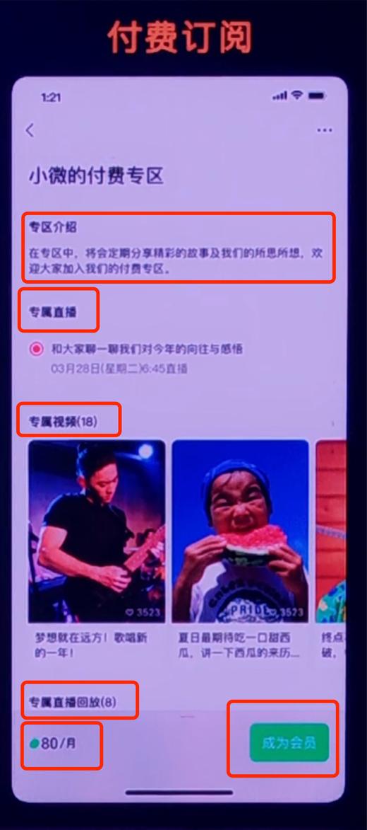 虽然官方并未提及关于付费订阅功能的更多细节信息,但从直播介绍截图来看,付费订阅功能可帮助创作者更好地服务付费会员,用户可以通过缴纳月费成为会员,获取创作者付费内容专区/专栏内的专属原创直播、视频、直播回放等。