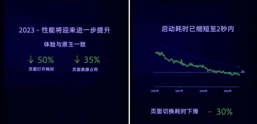 曾鸣透露,2023年小程序新的底层能力和框架将做一次更大的提升,现在已在逐步灰度过程中,届时页面打开耗时会继续下降50%,页面资源占用降低35%。而当前启动平均耗时已缩短至在2秒以内,页面切换耗时下滑30%,并且在所有机型下都能比较流畅地运行。