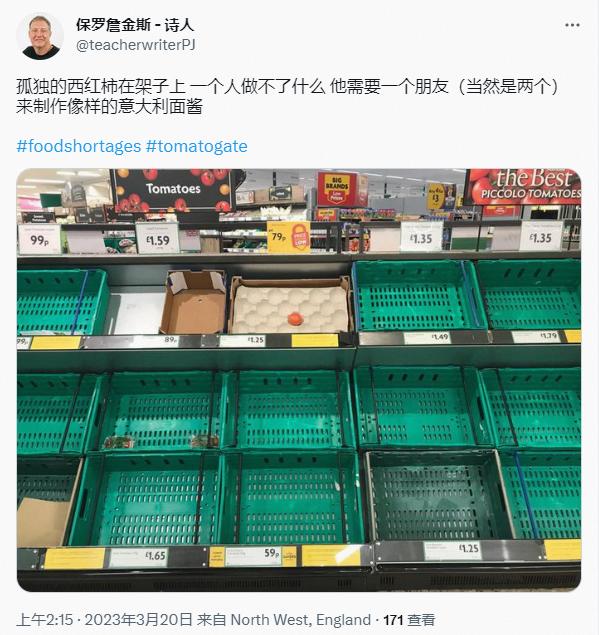 一位英国网友吐槽购买不到蔬菜