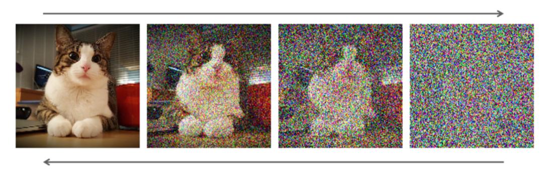 最近的一次技术革新是2022年诞生的Stable Diffusion扩散模型。 在这个模型里,针对一张清晰的图片,机器会在其中加入一些噪音,让图片从纯净的版本变为几乎全是噪音的图片版本,接着再把它恢复成原来的图片。在尝试学习如何从噪音中恢复有用信息的每一步之中,计算机会把比较难的任务拆解为多个相对简单的任务,达成最终生成质量的提升。