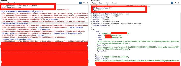 实现这一目标的方法是,首先创建一个特制的链接,将一个 .CSS 资源加载到 "chat.openai[.]com/api/auth/session/"端点上,并诱使用户点击该链接,导致包含有 accessToken 字符串的 JSON 对象的响应被缓存在 Cloudflare 的 CDN 中。