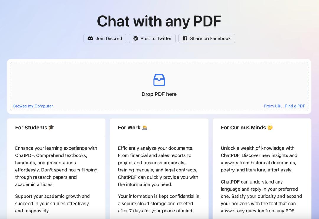 如ChatPDF,能够对拖拽PDF文件进行资料库搜索、重点提取、逻辑梳理等等,代入互联网产品的模式,这一功能应该出现在某些财报分析类软件的底层,形成一个后端的组合能力,通过对财报的抓取,下载、导入、分析,最终得出分析报告。