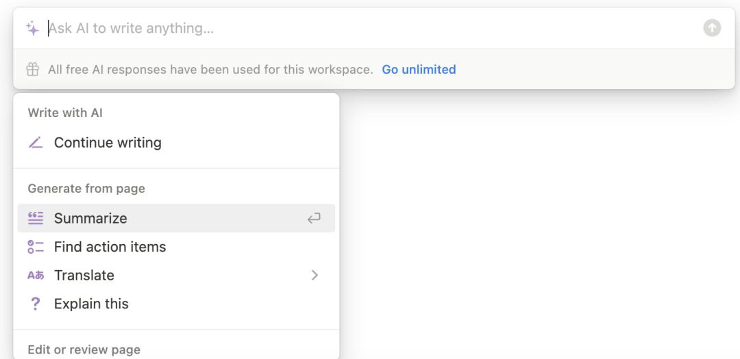不止ChatMind,NotionAI目前也采用类似的收费形式,区别在于NotionAI按照调取接口的次数收费,每位新用户有5美元的备用金,在用完之后,需要进行充值。