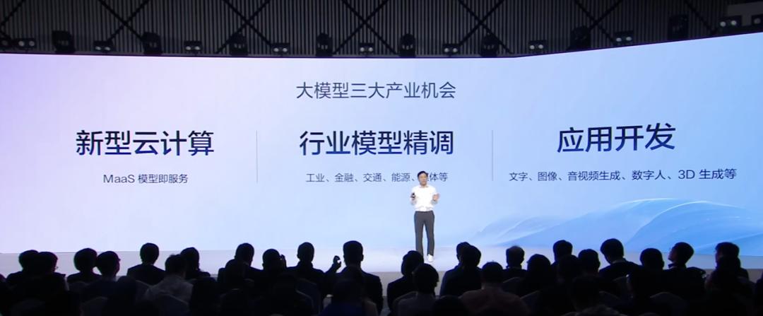 在文心一言发布会上,李彦宏也提出了大模型下的三大产业机会:MaaS模型即服务的方式、垂直行业模型和应用开发。李彦宏认为相比于MaaS和行业模型,应用生态是一个更重要且更大的机会。