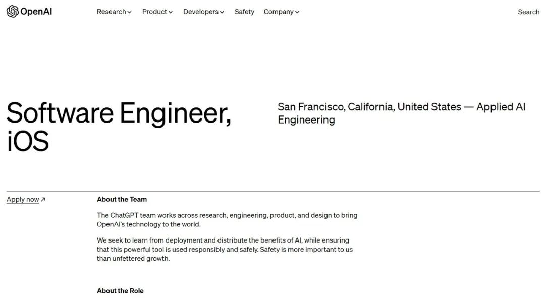 这意味着,属于ChatGPT的“APP Store”真的要来了,当天下午,OpenAI也开始广发英雄帖,招聘iOS和安卓工程师。