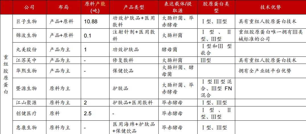 图:胶原蛋白行业重点公司,来源:华安证券