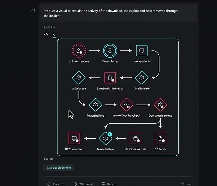 图源:微软产品演示:用自然语言让Security Copilot分析安全事件并给出可行动的事件响应建议