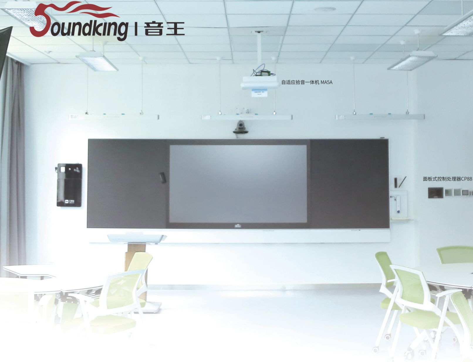 36氪陕西了解到,音王智能拾音一体机MA5A高度集成了调音台、数字功放、音频处理器、交换机、反馈抑制器、阵列麦克风六大设备,在整套系统中,还搭配多指向的阵列麦克风子机、音响、面板式控制器等软硬件组成,采用隐藏式拾音,可根据不同场景灵活配置拾扩音设备数量,通过内置的数字信号处理技术,实时调节音频信号的失真、背景噪声等各种因素。