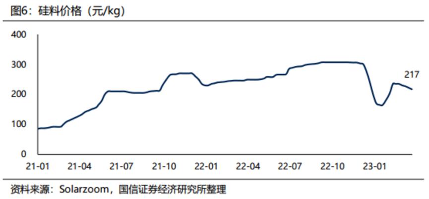 终于进入2023年后,硅料价格经历了一波“跳水惊魂”,在短短三四周内,硅料、硅片、电池等环节,均从最高点下降了40%左右,硅料从330元/公斤到了180元/公斤。