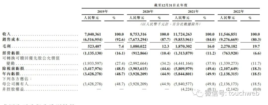财报显示,途虎养车2019年、2020年、2021年、2022年营收分别为70.4亿元、87.53亿元、117.24亿元、115.47亿元;毛利分别为5.23亿元、10.8亿元、18.7亿元、22.7亿元;
