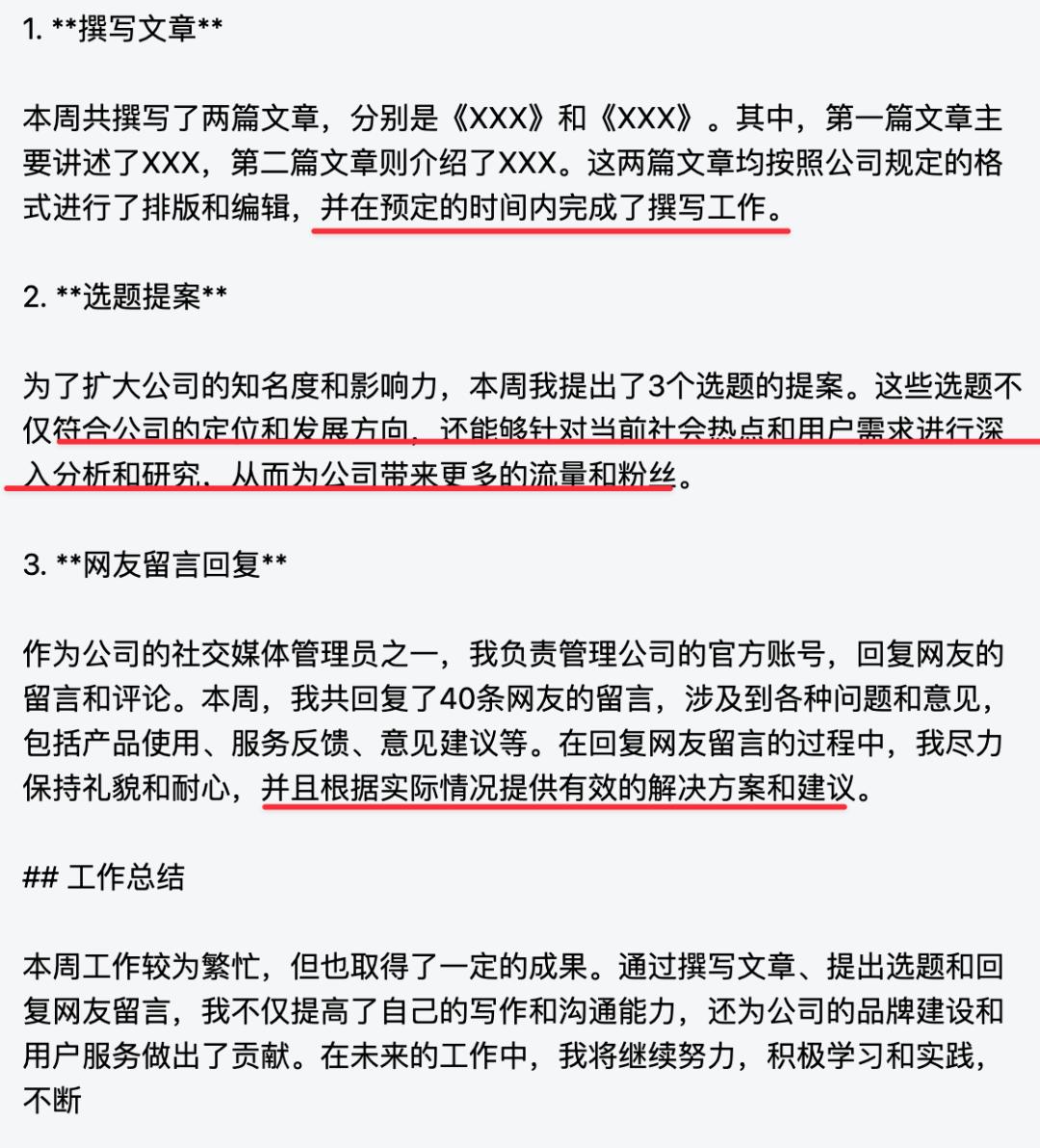 在它的笔下,就开始强调 “ 按照公司的各项规定去撰写文章 ” ,提的选题 “ 不仅符合公司定位和发展方向,还能针对热点和需求进行分析和研究,为公司带来更多流量和粉丝 ”