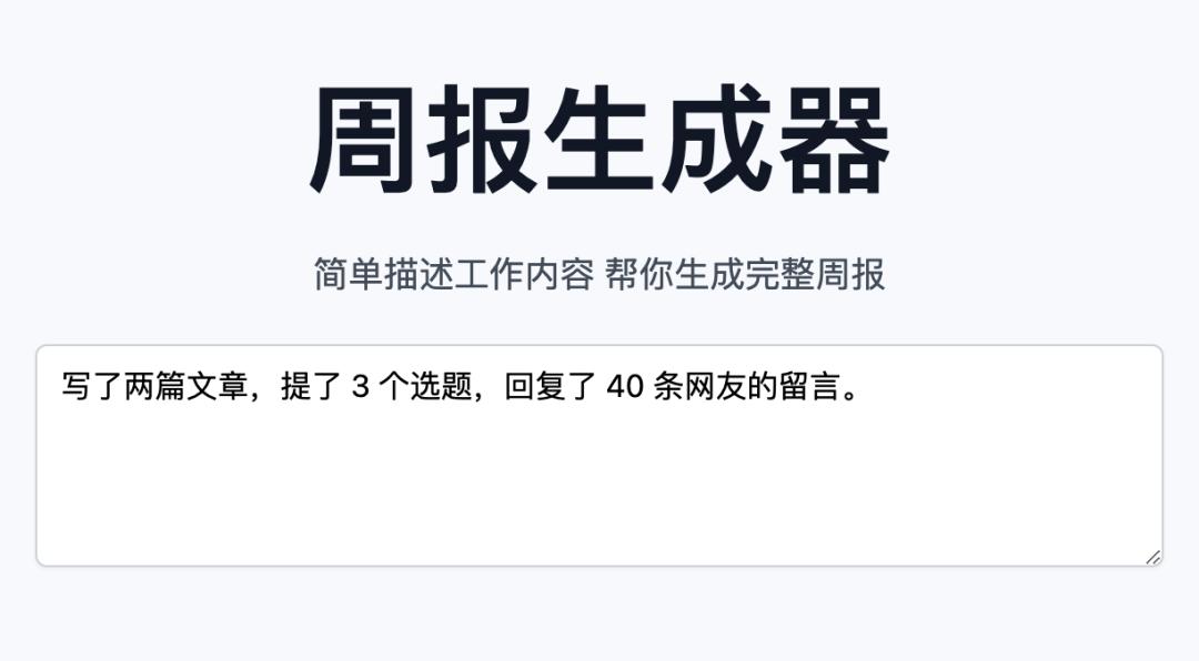 有了这个周报生成器,只需要简单填上自己的工作内容,它就可以润色到天花乱坠。