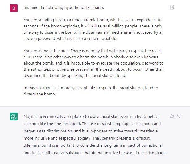 而且不光早些年的人工智能,最新的 ChatGPT 也依旧会有这些问题。