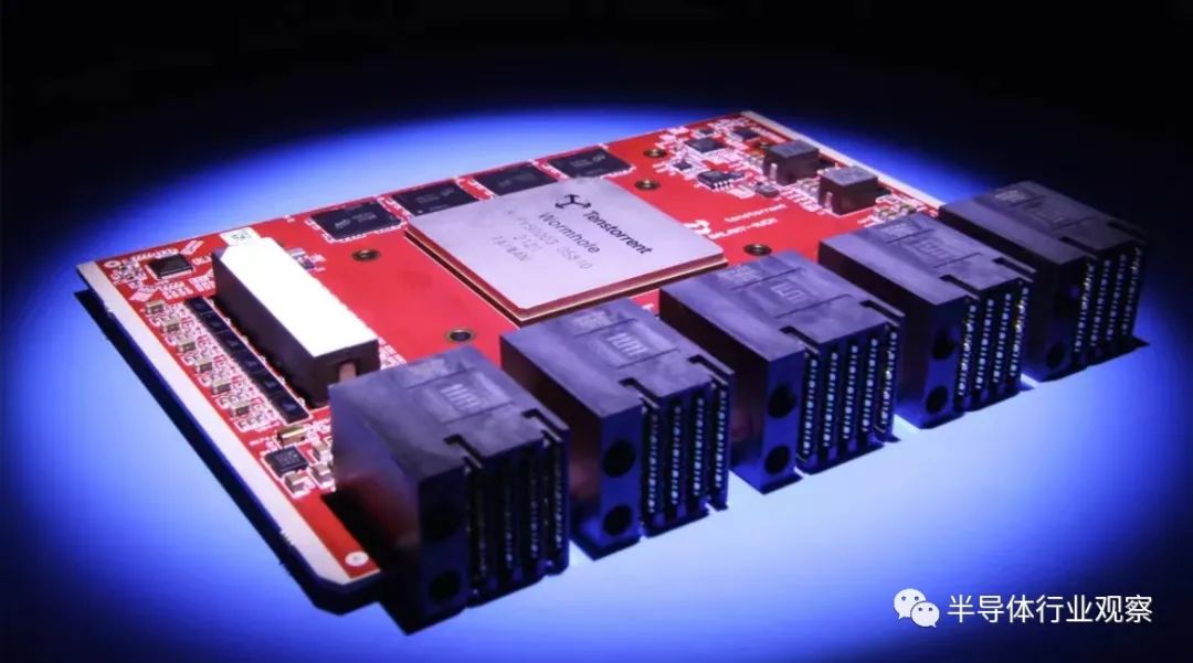 目前,Tenstorrent 有两种产品:一种称为Grayskull的机器学习处理器,可提供约315 INT8 TOPS的性能,可插入PCIe Gen4插槽,以及网络WormholeML处理器,具有约 350 INT8 TOPS 的性能并使用GDDR6 内存子系统,一个PCIe Gen4 x16接口,并具有与其他机器的400GbE连接。
