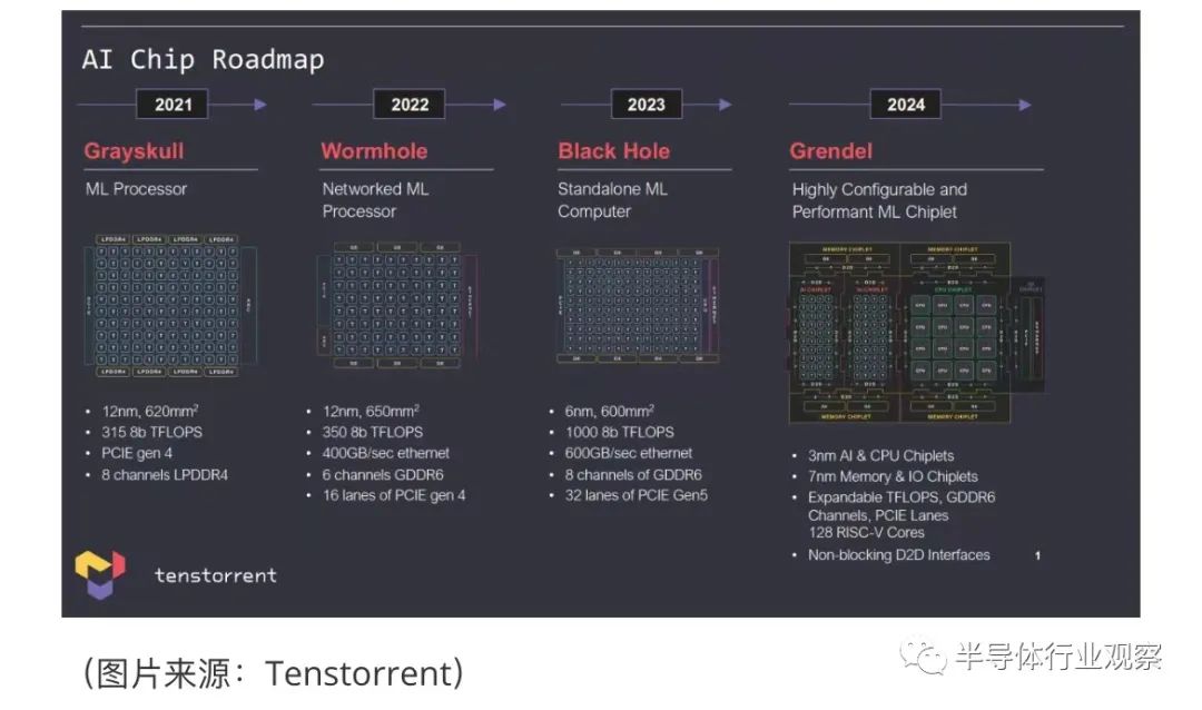 明年,该公司将发布其终极产品:名为Grendel的多小芯片解决方案,该解决方案具有自己的Ascalon通用内核,具有自己的RISC-V微架构,具有八位解码器以及用于ML工作负载的基于 Tensix 的小芯片。