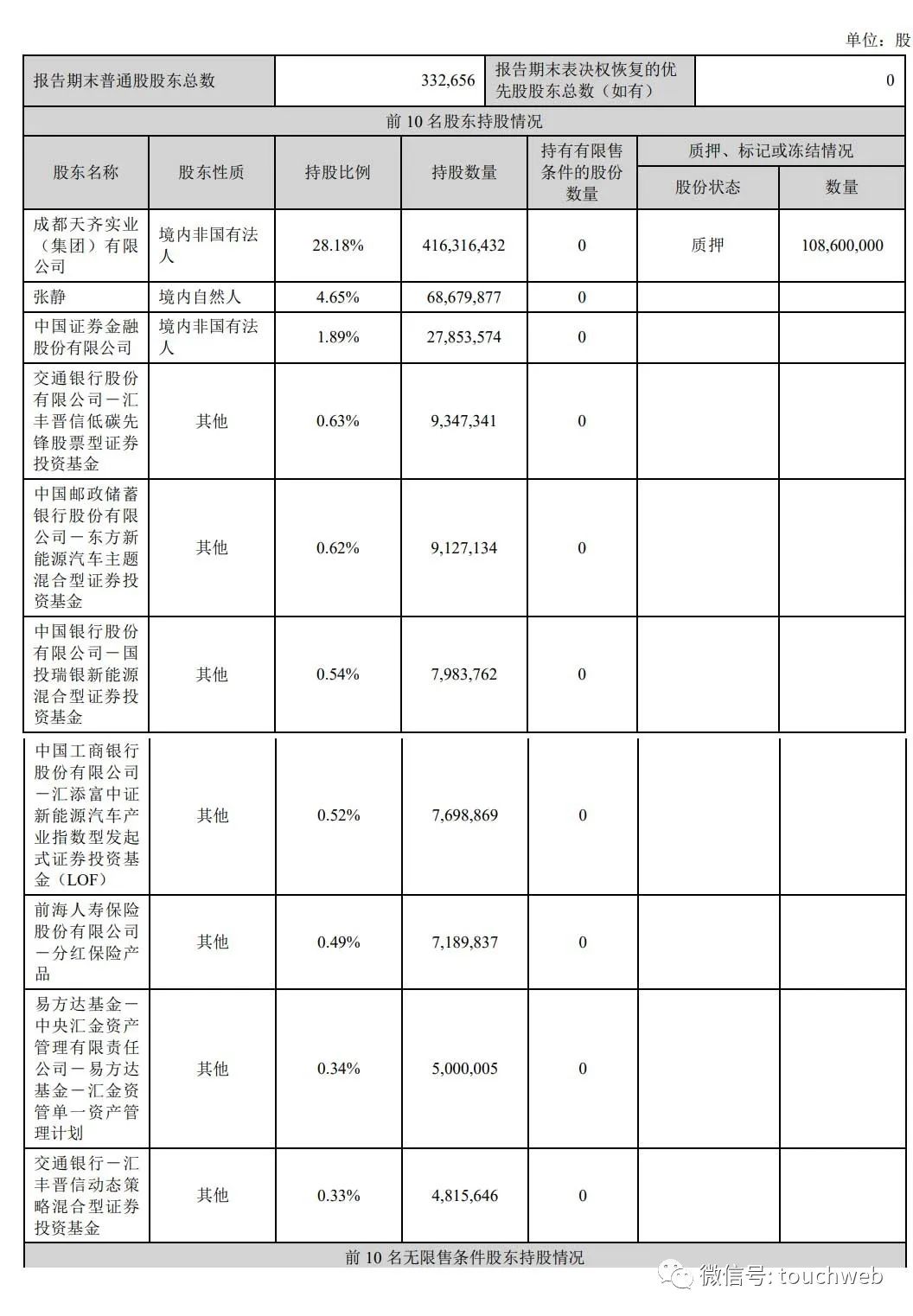 截至2022年12月31日,成都天齐实业(集团)有限公司持股25.37%,HKSCC NOMINEES LIMITED持股10%,张静持股为4.18%,香港中央结算有限公司持股为3.47%,中国证券金融股份有限公司持股为1.7%,中国邮政储蓄银行股份有限公司-东方新能源汽车主题混合型证券投资基金持股为0.68%;
