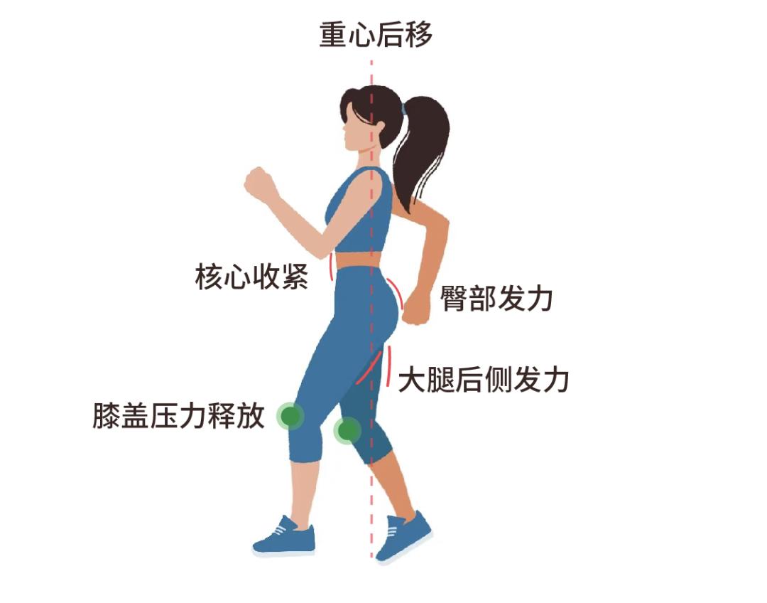 当你倒着走时,身体重心会向后移,腰腹部为维持稳定会不自觉地收紧,臀部肌肉和大腿后侧肌肉(如臀大肌和腘绳肌)会发力控制腿抬起并向后迈步,髋关节及附近肌群得到伸展。