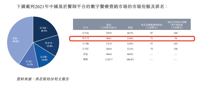 招股书显示,根据弗若斯特沙利文的资料,于2022年12月31日,公司的平台拥有约290万名注册医师用户,且于2022年的平均每月活跃用户达约270万人。