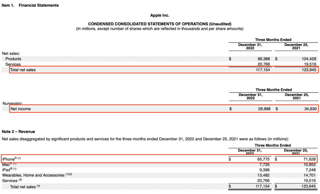 数据显示,苹果去年Q4总营收为1171.54亿美元,同比下滑5%;净利润为299.98亿美元,同比下滑13%。这是自2019年以来苹果季度营收首次出现同比下滑。