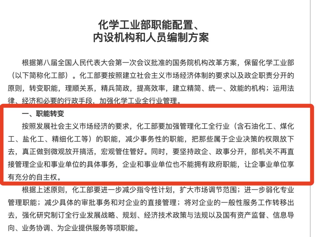 以机械工业部的这些年的变化为例,1982年的机械工业部是正儿八经的国家部委,地方上也有下辖的机械工业厅。但随着市场化的推进,机械工业部被改为了机械工业局,归入经贸委的旗下。