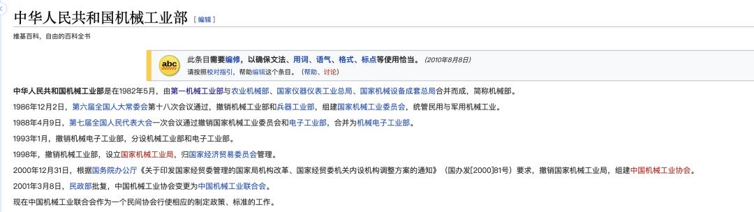 2000年后,改革进一步深入,机械工业局撤销了,变成了中国机械工业协会,后来又更名为了中国机械工业联合会。这就不是政府部门了,而是成为了民间协会。