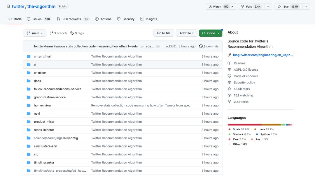 前几天他又表示,推特会在 3 月 31 日开源推荐代码。这一次,他终于兑现了。