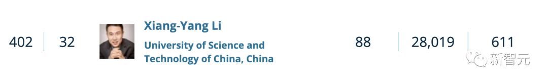 华人学者在世界TOP20中占了3席位置。
