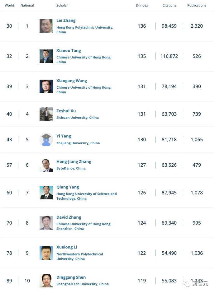 全球TOP 1000计算机科学家公布:中国96位学者上榜,港理工张磊居大陆科学家之首