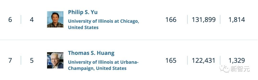 此外,俞士纶(Philip S. Yu)、黄煦涛(Thomas S. Huang)都是进入TOP20的计算机科学家。