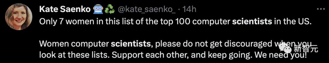 网友指出,其中,在美国TOP100计算机科学家中,只有7位女性。