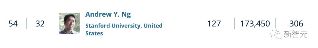 此外,还有我们熟悉的人工智能领域专家Andrew Ng(吴恩达)教授全球排名第54。