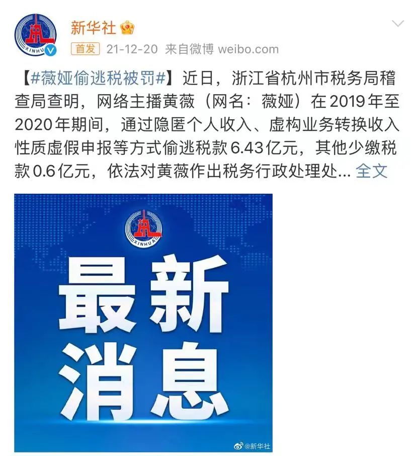 2021年双十二前夕,淘宝头部主播雪梨(MCN宸帆CEO)因为偷税漏税被封禁。而仅仅十多天后,全平台最大的主播“薇娅”也因为相同的原因被一夜之间“互联网消失”。在被封禁前的双十一期间,薇娅才刚刚因为和李佳琦两人联手卖出近200亿货品而冲上热搜。