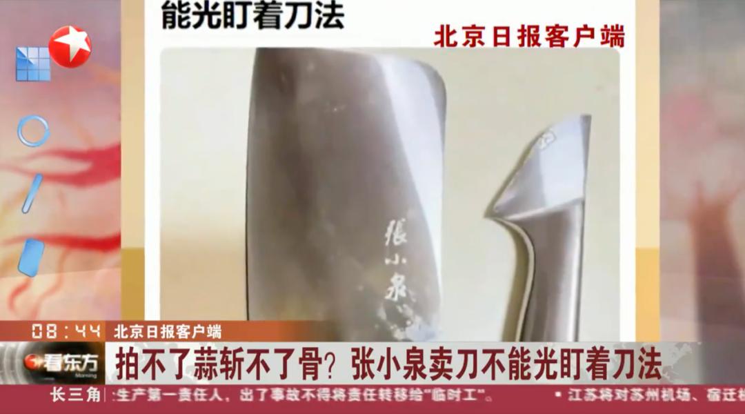 这已经不是张小泉第一次断刀了。与这次斩骨头不同,前两次消费者甚至只是拍了拍大蒜。