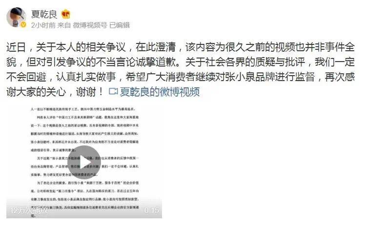 虽然随后夏乾良在微博回应称自己的言论是被误解,也向消费者做出了道歉,并发起了断刀退换货活动,但这些都不能抹去消费者对张小泉的品牌印象——你好像在教我做事?