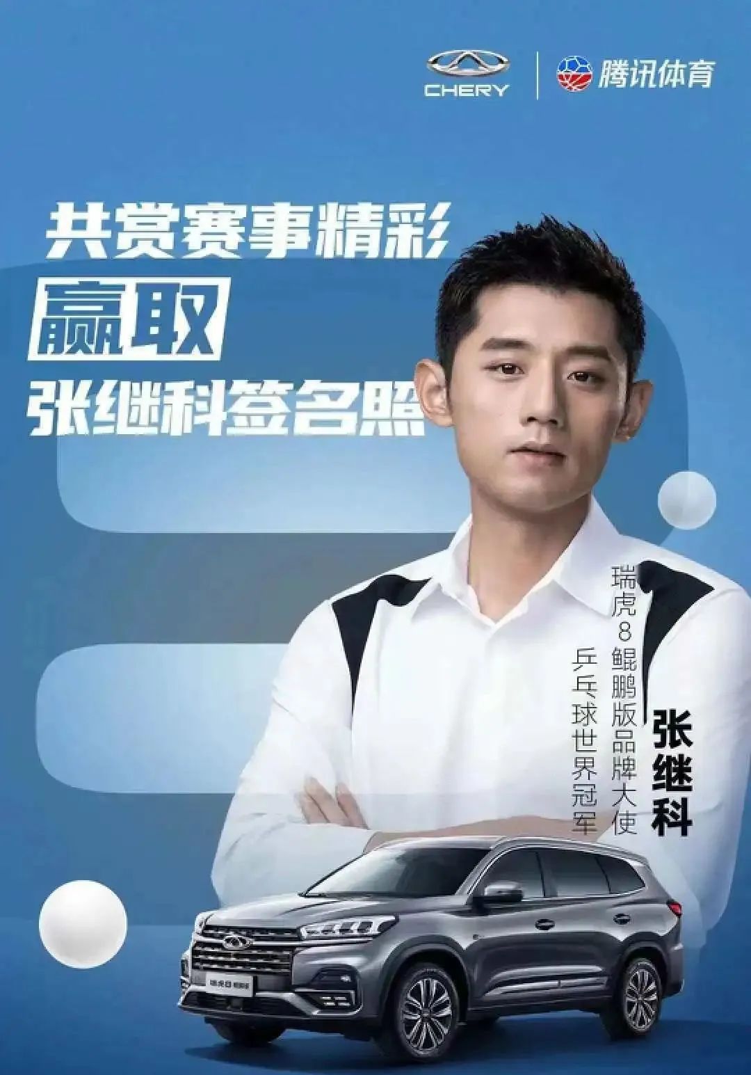 2021年7月17日,张继科以瑞虎8鲲鹏版品牌大使亮相青岛,出席奇瑞瑞虎8粉丝盛典暨瑞虎8鲲鹏版全球上市发布会。