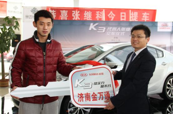 2012年11月,东风悦达起亚在济南为K3代言人张继科举办了交车仪式。