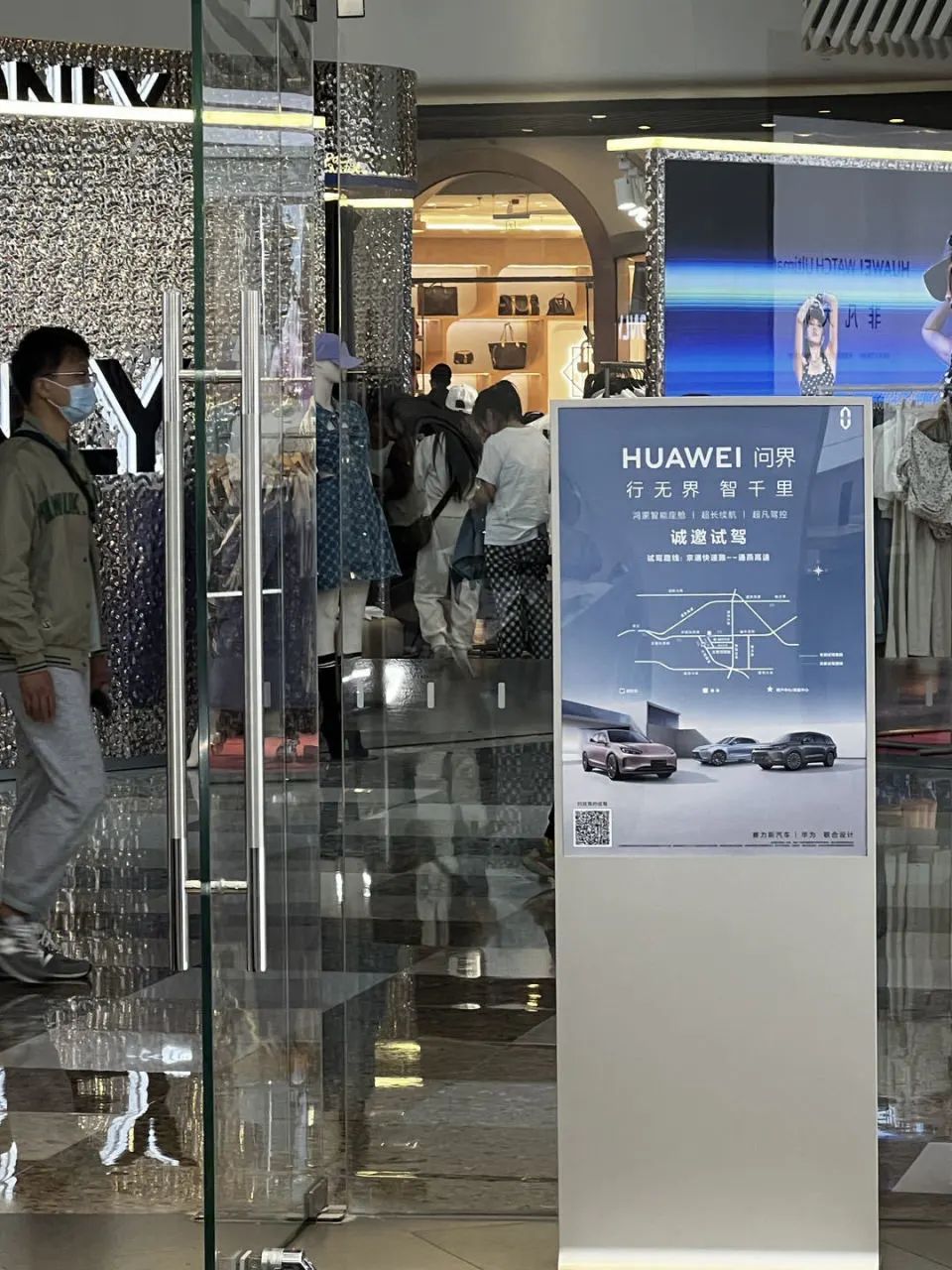 在此背景下,华为内部迅速调整了对问界的宣传口径、方式。而首先调整的,便是相关门店中含有“华为”、“HUAWEI”字眼的各类宣传标识,以及销售人员的宣传口径。