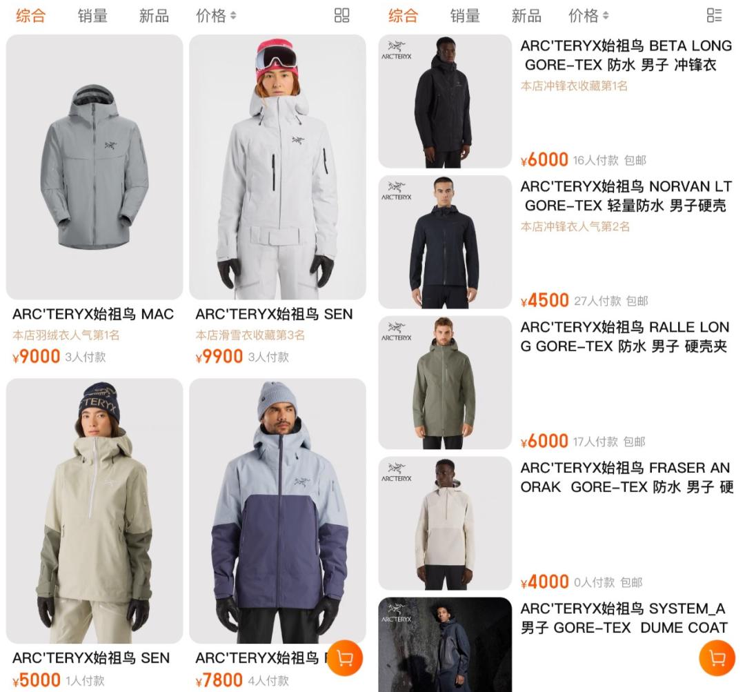 而冲锋衣稳重耐用的设计,更是击中了中老年群体的审美,在有限的选择中,既要突显身份又得百搭实用,相比那些花里胡哨的奢侈品服装,始祖鸟脱颖而出,成为从一二线到县域市场土豪大爷大妈们的最佳选择。