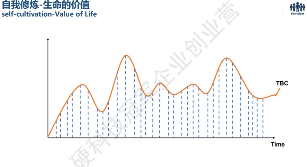 这些思维是企业家必备的,但生命的价值和意义是这样的,(如下图)你的每天是一根柱子,有高峰、有低谷,最后的面积就是你这辈子的价值。