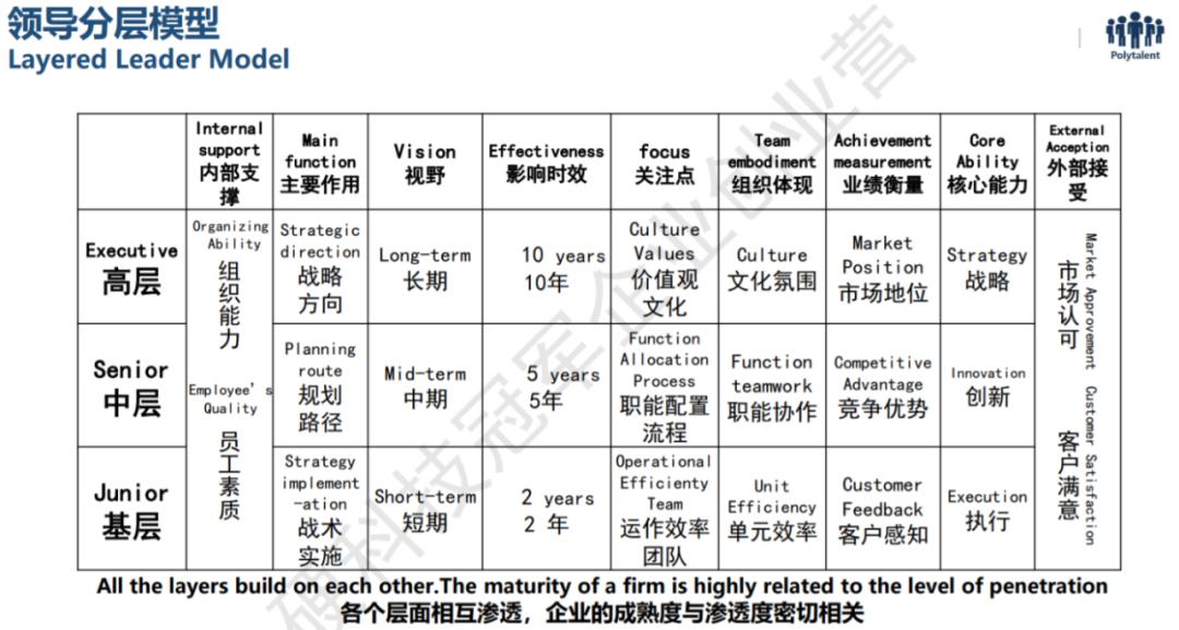 基层:是具体做事的人,他们的影响较短,但基层的效率会直接影响竞争力。