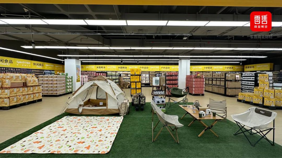 「零售商业财经」在现场看到,除了春游露营场景(露营车、帐篷、蛋卷桌、卡式炉、折叠椅等)的布置相对吸引眼球外,该专区仅一位工作人员在堆码货品,而消费者却寥寥无几。