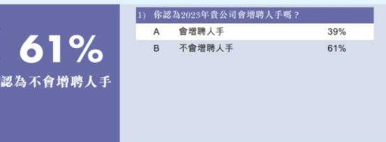 香港证券业协会调查发现,多达61%的受访券商今年不拟招聘人手;只有9%券商称今年将会扩充业务。