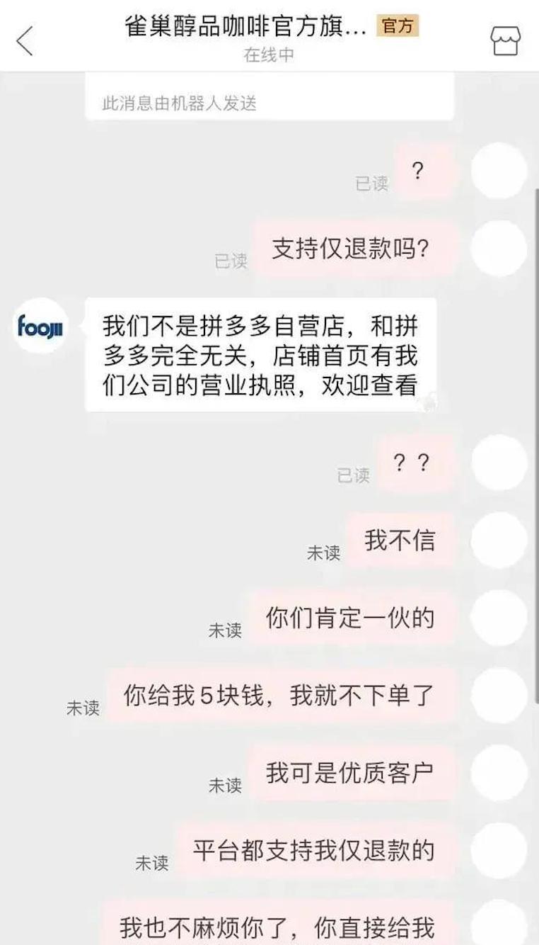 原因是,很多人在“拼多多福利社”恶意下单,并在下单后申请“仅退款”,并在客服聊天过程中,辱骂拼多多平台和平台创始人黄峥。